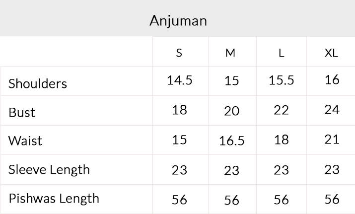 Bask in the gilded glow of Anjuman, a golden honey colored angrakha made of light cotton net that redefines theatrical opulence. The angrakha features an asymmetric opening, with delicate trims adorning the front and elegant mughal motifs dot the sleeves, while the accompanying velvet shawl steals the spotlight with its lush embroidery featuring swathes of lyrical vines done in intricate adda work, and embellished with delicate kiran finishings. The ensemble includes a churidar pajama and a henna-brown organza dupatta with a heavily embroidered floral sitari pallu that glimmers like starlight. Anjuman is a vivid reminder of the cinematic grandeur of Lollywood’s golden age.