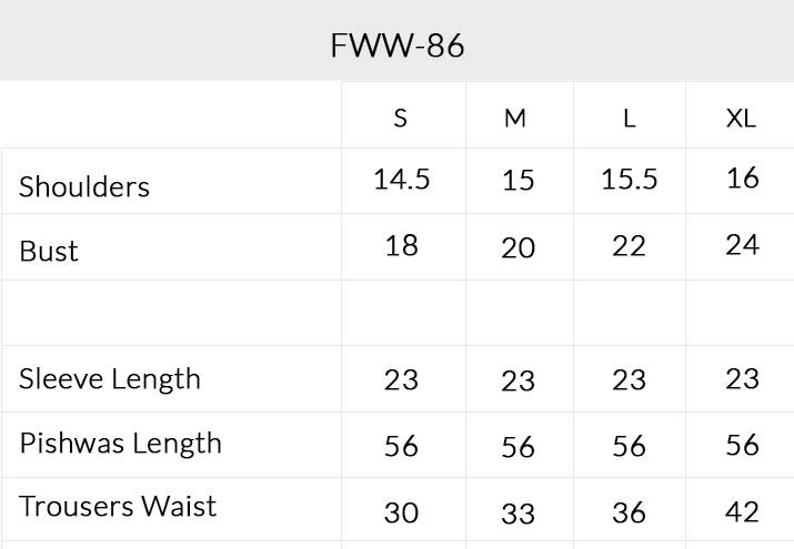 This voluminous white peshwas is stitched in alternating organza panels: one plain, the next embroidered with scattered floral motifs joined with decorative trims that accentuate its sweep. The bodice features schiffli embroidery in a lattice arrangement, interspersed with floral motif sprays for added texture. At the hem, a floral thread work border adds a final flourish of romance. Paired with a traditional churidar pajama and a dupatta fashioned from both khadi net and chiffon layered and trimmed to perfection. Making this is a look made for lightness this Eid.