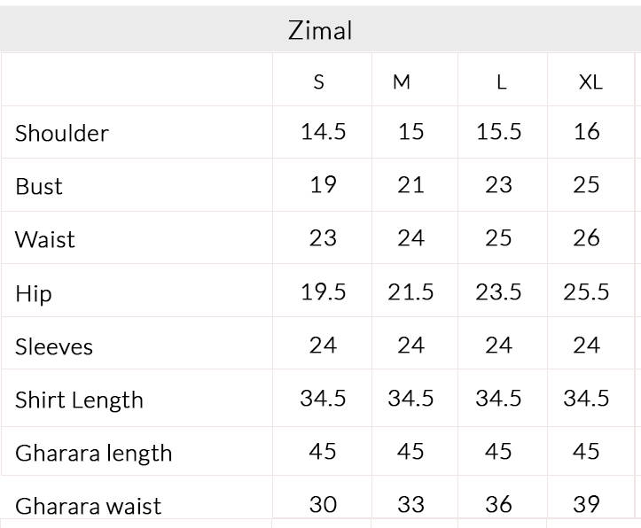 Zimal is our royal blue and desi gulabi pink hued kameex gharara signature MNR ensemble. The shirt is made out of magnificent kattan silk featuring beautiful jamawar applique, further enhanced by beautiful sheesha embellishments and gilded thread adda work. It is paired with a matching gharara with golden lattice patterns in block print along with hand embroidery depicting mughal floral motifs. The look is completed by a contrasting dupatta in the hues of desi rose, featuring metallic foil printing like chunri motifs for a playfully summery look